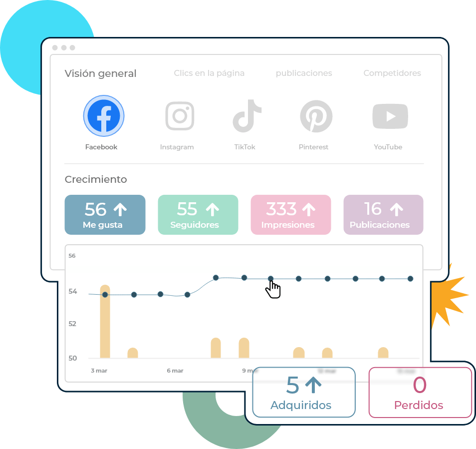 Con tu dashboard de redes sociales podrás medir el crecimiento de tu comunidad, la interacción de tus posts, analizar tu competencia y seguir la evolución de tu marca. Aprovecha el poder de los datos y toma decisiones acertadas.